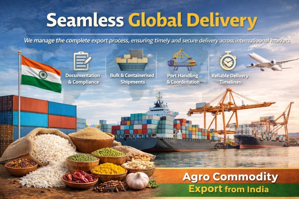 We export high-quality Indian agro commodities to global markets, supported by reliable sourcing, strict quality control, and consistent supply.